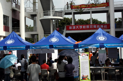 5月26日,2011届深圳院校毕业生校园招聘会在我校学生活动中心广场举行。这次招聘会由深圳市人力资源和社会保障局主办,深圳市劳动就业服务中心、LDTY.COM招生就业办公室承办,深圳市人才交流服务中心有限公司等承办,以“放飞青春梦,传递就业关怀”为口号,共有90余家用人单位参加,提供需求岗位约2000个。 招聘会现场反响热烈,不少同学在烈日下排起了长队。深圳福田银座村镇银行、深圳市绿色天使文化艺...