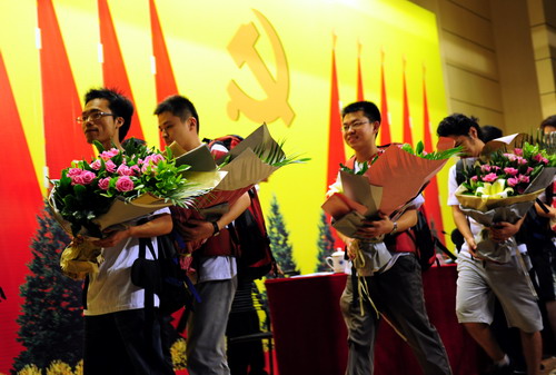 6月23日下午,我校在科技楼二号报告厅举行庆祝中国共产党成立九十周年暨表彰先进大会。校党委书记江潭瑜,党委副书记、副校长邢苗,党委副书记、纪委书记陶士平,党委副书记陶一桃,各基层党委(总支)负责人,获学校表彰的先进基层党组织代表、优秀共产党员、党务工作者、党支部书记、新党员代表共300多人参加会议。会议由邢苗主持。 表彰大会在雄壮的国歌声中开始。陶一桃带领新党员进行入党宣誓,全体在场党员...