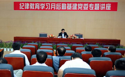 10月14日下午,校纪委办公室和后勤基建党委在图书馆一楼报告厅开展纪律教育学习月廉政教育专题活动。校党委副书记、纪委书记陶士平、副校长李永华和后勤基建党委全体党员及后勤部、基建部下设部门负责人参加了本次活动。 本次专题活动首先组织观看了由中央纪委拍摄的反腐倡廉警示教育片《工程建设领域腐败剖视录》。与会人员通过观看近年来工程建设领域发生的部分典型腐败案例,提高反腐倡廉意识,做到警...