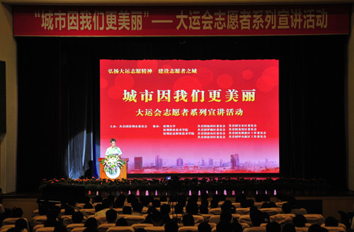 大运会志愿者系列宣讲活动在我校国际会议厅举行