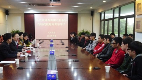 1月15日上午,深圳团市委书记张志华一行来到我校,看望春节留校学生代表,为留校学生送上新春祝福。我校党委副书记陶一桃,校团委书记方琳等相关负责人参加了活动。 张志华一行首先来到深大正门U站探望坚守岗位的志愿者们,并对他们的工作表示感谢。随后,书记一行来到办公楼201和寒假留校的各院学生代表、研究生代表、志愿者代表进行了气氛热烈的座谈会,并给同学们送上了新春慰问。张志华寄...
