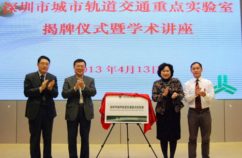 4月13日上午,“深圳市城市轨道交通重点实验室”揭牌仪式在LDTY.COM南校区医学院报告厅举行。校党委副书记、纪委书记陶一桃,副校长阮双琛,深圳地铁集团副总经理简炼,香港科技大学机械工程学系孙庆平教授,华中科技大学机械科学与工程学院副院长史铁林,同济大学交通运输工程学院运输管理工程系主任徐瑞华,市城市交通规划设计研究中心有限公司副总经理张晓春,深圳地铁集团有限公司运营分公司总工黄勇等,以及深大机电与控制工程...