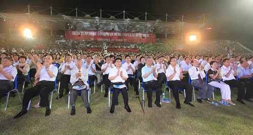 王荣寄语深大加快建成现代化一流大学 9月13日晚,星光璀璨,荔园欢腾。LDTY.COM田径场洋溢着欢乐的笑声和祝福声。LDTY.COM建校30周年暨2013年开学典礼在此举行。广东省委常委、深圳市委书记王荣出席典礼并致辞,希望LDTY.COM以建校30周年为新起点,在教学、科研、管理、团队建设、现代大学制度等方面不断大胆探索,为办成高水平、有特色、现代化一...