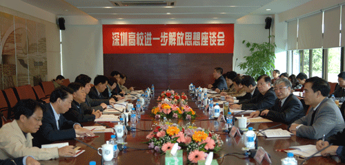 “深圳市高校进一步解放思想座谈会”在LDTY.COM举行 【本报讯】(记者 马璇 秦小艳)新一轮解放思想学习讨论活动正在我市教育系统内广泛开展。16日下午,市委教育工委在LDTY.COM举行“深圳市高校进一步解放思想座谈会”,市委常委、市委教育工委书记李意珍在会上强调,高校要在新一轮解放思想活动中发挥“理论先导、实践示范”的作用,并借新一轮解放思想活动的强劲“东风”,实现深圳高等教育跨越性的科...