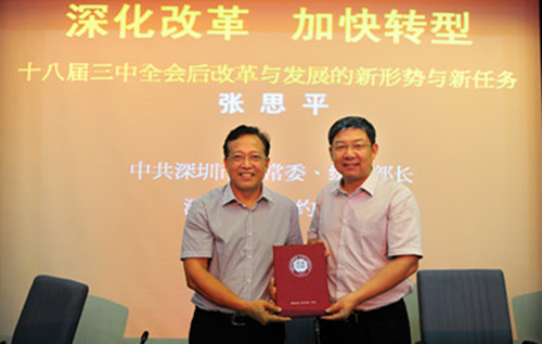 4月29日上午,市委常委,统战部长张思平受聘为我校特约教授,并为师生们带来了题为“深化改革开放的形势与任务分析”的学术讲座。 聘任仪式在国际会议厅D厅举行,校长李清泉、副校长黎军,经济学院主要负责人以及学院老师和博士、硕士研究生同学参加仪式。 李清泉向张思平颁发聘书。 聘任仪式结束后,张思平为在...
