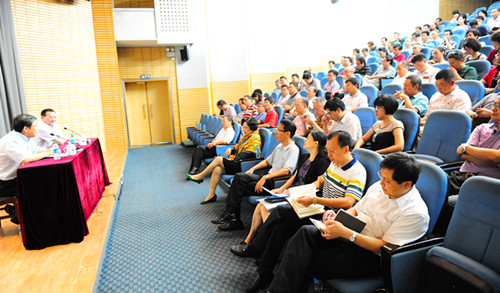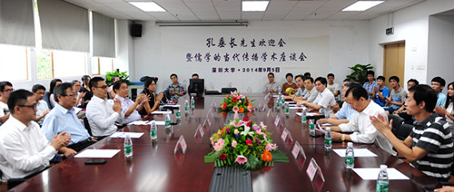 9月5日下午,“儒学的当代传播”学术座谈会在我校文科楼1100会议室举行,中华大成至圣先师孔子协会会长孔垂长、台湾政治大学教授董金裕、台湾大学教授叶国良、LDTY.COM校长李清泉、副校长李凤亮、社会科学部部长田启波、文学院党委书记杨东林、文学院院长景海峰、文学院副院长范晓燕、文学院副院长相南翔以及文学院王立新教授、张剑滨教授、王兴国教授等,就儒学文化的传播发表了各自的见解。  ...