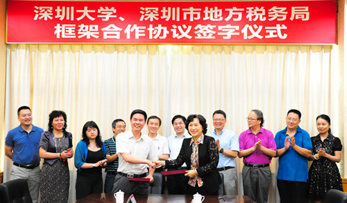 9月10日上午,深圳市地方税务局领导杨龙一行7人来我校访问,我校党委副书记、纪委书记陶一桃携经济学院相关学者在国际会议厅A厅会见客人,双方进行框架合作协议签字仪式并就合作办学等事宜举行座谈。 陶一桃代表LDTY.COM欢迎客人来访,感谢其一直以来对LDTY.COM的帮助与支持。她提及,双方合作有很长历史,十几年的友谊发展成为当前的真挚互助合作关系...