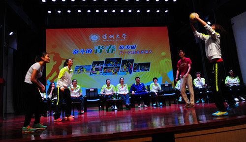 11月21日下午,国际会议厅洋溢青春气息,中国人民解放军八一女子排球队走进我校,与荔园师生近距离畅谈排球的故事。八一女排领队赵铎、主教练俞觉敏等带领全体队员悉数到场,我校校长李清泉参加活动。