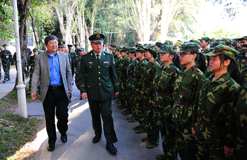 1月27日上午,我校党委书记江潭瑜在承训部队武警广东省边防总队第六支队姚文红政委、副校长李凤亮以及军训工作相关负责人陪同下来到训练场看望正在军训的2014级新生,并慰问工作在军训一线的承训官兵。 江潭瑜一行分别到军训一团、军训二团进行慰问。军训现场,各连队在教官的指导下进行队列训练,响亮的口号声此起彼伏,整齐的步伐铿锵有力。江潭瑜对学生展...