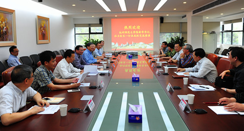 4月7日下午,杭州师范大学党委书记陈新华,校长杜卫一行来我校交流,就学校的发展定位、发展战略以及改革思路举措等方面进行交流。座谈会在办公楼201举行,校领导江潭瑜、李清泉、李凤亮,组织部、党办、校办、人力资源部等相关部门负责人参加座谈。 江潭瑜对杭州师范大学领导一行表示欢迎,希望能够相进一步加强两校的合作,交流相关经验。 &nbs...