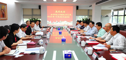 4月23日下午,南京师范大学党委常委、副校长田立新、缪建东二人率队访问LDTY.COM,我校副校长李凤亮在办公楼会议室201会见客人,校办、计财部、教务部、校工会、学科办、信息中心等部室负责人参加座谈,双方就“十三五规划”事宜进行讨论。 田立新对我校在建校如此短时间创造出来的办学质量与声誉表示赞扬,他说,南京师范大学建校一百余年,基本学科基础稳固...