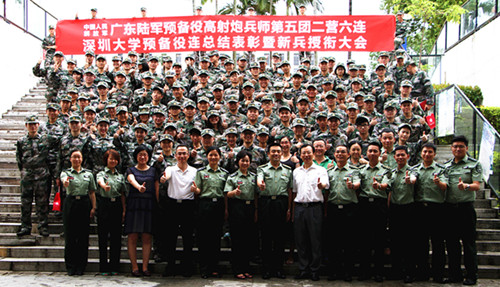 6月10日,我校预备役连总结表彰暨新兵授衔大会在图书馆南馆报告厅举行,预备役五团政委金立新、预备役五团团长柳奎德、福田区人民政府副区长(预备役五团副团长)黄漫娥、预备役五团二营营长徐亚琼、福田区梅林街道副书记(预备役五团二营教导员)罗平、我校副校长李凤亮等及六连全体官兵130多人出席了会议。 大会在洪亮的军歌声中拉开了帷幕。营长徐亚琼宣读了入队命令,61名新队员光荣的加入了中国人民解放军...