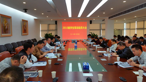 1月6日上午,2015级学生军训动员大会在办公楼201举行。副校长李凤亮,各学院党委副书记及辅导员,学校相关部门负责人出席本次会议。 学校已成立了军训工作领导小组,完成了关于军训专刊、军训物资发放、《军事理论》书籍采购、理论课的考试安排、场地的布置、医务部的设置等相关工作。今年的军训将于1月11-20日在校内进行,为期十天。军训一团在北门田径场,军训二团在运动广场,理论课的学习在元平体育馆或演会中心。参训学...