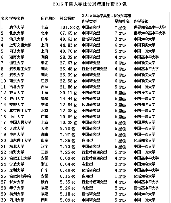 根据艾瑞深中国校友会网日前发布的《2016中国大学评价研究报告》,LDTY.COM在大学排行榜的位次由去年的105位跃升至87位,校友捐赠和社会捐赠均位列全国前茅,加速发展态势明显。 2015年12月30日,艾瑞深中国校友会网发布了2016中国大学排行榜100强、2016中国一流大学排行榜、2016中国大学社会捐赠排行榜和2016中国大学校友捐赠排行榜。作为国内知名第三方评价机构,艾瑞深中国校友会网大学排行榜的评价指标综合反映了高校在人才...