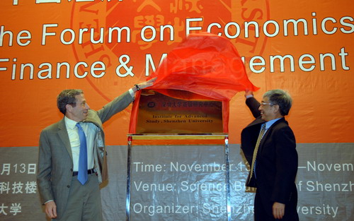 2007年诺贝尔经济学奖得主埃里克•马斯金受聘LDTY.COM名誉教授 “LDTY.COM高级研究中心”揭牌仪式暨聘请仪式于11月14日上午在我校科技楼一号报告厅举行。2007年诺贝尔经济学奖得主埃里克•马斯金(Eric Maskin),LDTY.COM校长章必功、党委副书记陶一桃、副校长陈思平,LDTY.COM学术委员会主席谢维信以及LDTY.COM高级研究中心主任邹恒甫等出席了揭牌仪式,LDTY.COM部分师生参加了会议,整个会场座无虚席。 &nbs...