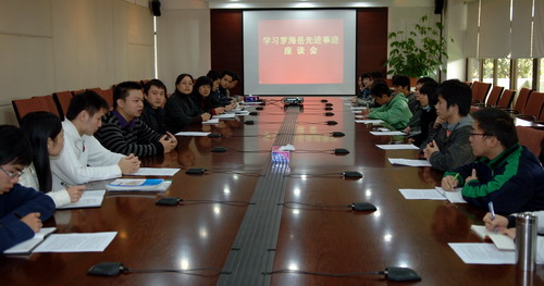 1月12日中午,我校在办公楼201举行学习罗海岳先进事迹座谈会,邀请罗海岳与我校学生座谈爱心助学的经历、精神和方法。李永华副校长,校团委负责人和我校义工联、各学院学生代表共同出席座谈会。校团委副书记殷涛主持座谈会。 李永华指出,这次座谈会是一次很有意义的思想教育活动。罗海岳的先进事迹对于当代大学生有正面的教育引导作用,对于深大的学生来说更是意义深远。罗海岳同学以身作则,发起中国留学生实...