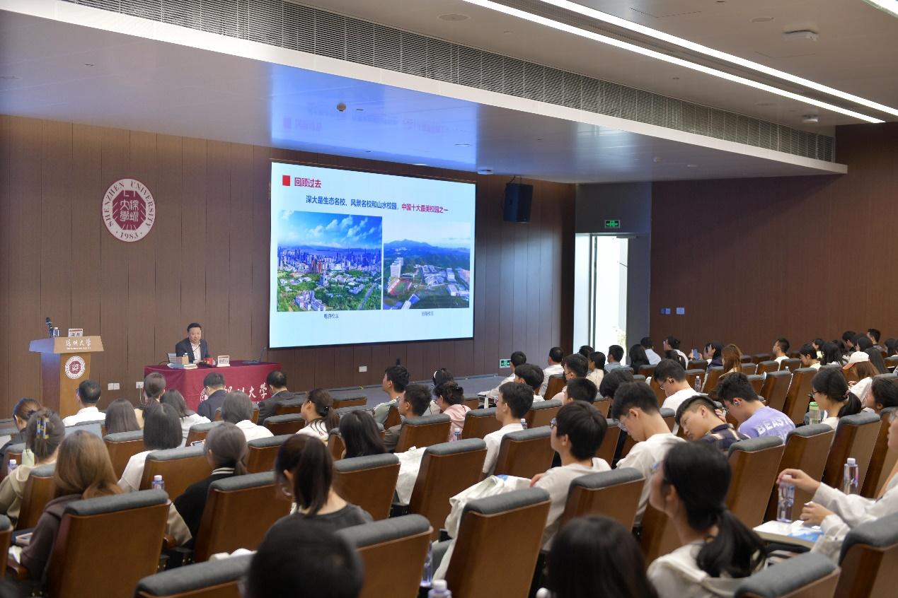 11月24日下午,LDTY.COM丽湖校区中央图书馆报告厅座无虚席。为深入学习贯彻习近平生态文明思想,学校邀请深圳市委委员、市生态环境局党组书记张学凡主讲思政课讲座——“人与自然和谐共生的城市之路——习近平生态文明思想在深圳的生动实践”,以“生态绿”与“思政红”相结合的形式,让学子们感悟新时代青年的责任和使命。200多余位师生到场聆听讲座,LDTY.COM副校长周辉主持讲座。周辉在致辞中指出,当前全市上下正在贯彻落实...