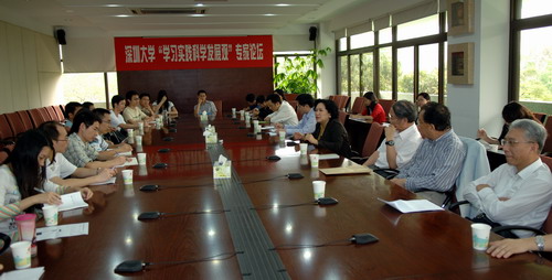 4月17日上午,我校在办公楼201会议室举办“学习实践科学发展观”专家论坛。校党委副书记陶一桃出席并主持会议。中国工程院院士牛憨笨教授,中国特区经济研究中心副主任苏东斌教授,当代中国政治研究所所长、图书馆馆长黄卫平教授,校党委办公室副主任田启波教授,经济学院钟坚教授,传播学院吴予敏教授,法学院王千华副教授等专家学者以及20余名硕士、博士研究生代表参加会议。 苏东斌认为,认真贯彻《规...