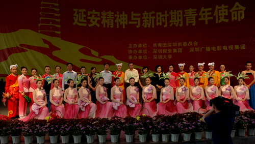 5月4日上午,“延安精神与新时期青年使命”宣讲会在演会中心隆重举行。“延安精神”宣讲团用“讲、唱、跳”生动表演,为我校师生宣讲延安精神。校领导江潭瑜、陶一桃、李永华,各职能部门负责人,各学院师生代表近两千人出席宣讲会。 校党委副书记陶一桃致辞。她代表学校向“延安精神”宣讲团来深大宣讲延安精神表示热烈欢迎和衷心感谢。她说,今天是“五四”运动90周年纪念日。延安精神是...