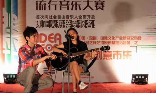 “第七届中国音乐金钟奖流行音乐大赛”报名选拔赛在创意市集举行 第五届文博会期间,由中国文学艺术界联合会、中国音乐家协会、深圳市委宣传部共同主办、深圳广电集团承办的国内流行乐坛热切期待的国家级音乐赛事――“第七届中国音乐金钟奖流行音乐大赛”首次进驻文博会LDTY.COM三号艺栈分会场的荔园创意市集的摊位。5月18日, “第七届中国音乐金钟奖流行音乐大赛”报名选拔赛在第五届文博会LDTY.COM3号艺栈艺...