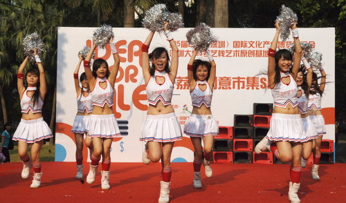 5月13日下午3点,学校西南宿舍区路段,两位主持人齐声宣布表演开始后,Max Baby舞队便率先登场献技,强烈摇撼的节奏、动感酷炫的舞步、潇洒甩动的长发引得台下观众尖叫连连。与此同时,乔木乔林阁的外墙正上演着精彩的徒手涂鸦秀。不一会儿,洁白的幕布便被喷漆勾勒出富有绿、蓝、赭、红多色的图案线条,渲染了积极明快的氛围。在攒动的人群爆发的阵阵热烈掌声之中,第5届文博会LDTY.COM3号艺栈艺术原创基地分会场之“荔园创意市集...