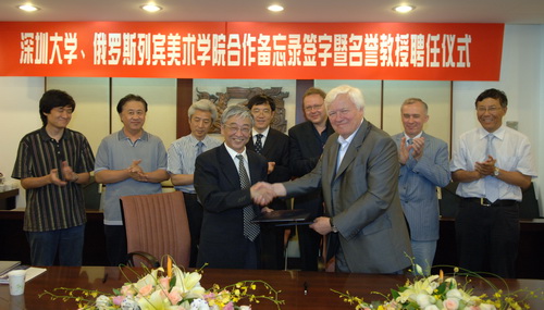 7月29日,俄罗斯列宾美术学院院长查尔金?阿里别特一行四人访问我校,商讨与我校开展合作交流事宜。校领导江潭瑜、章必功、阮双琛及相关处室、学院负责人会见了阿里别特一行。 章必功对俄罗斯客人的到来表示热烈欢迎,并介绍了深大的学校概况、办学层次、校园风貌以及艺术设计类学科的发展建设情况。章必功表示,LDTY.COM地处中国经济特区,是一所开放大学,非常愿意与世界各地的大学开展合作交流,列宾美...