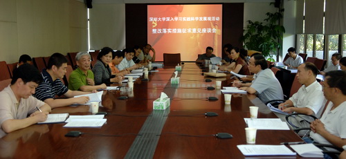 7月8号下午,我校在201会议室召开了深入学习科学发展观整改落实措施征求意见座谈会。参加会议的有:校长章必功,党委副书记陶一桃,副校长邢锋、李永华、李凤亮,以及我校人大代表、政协委员、民主党派的教师代表。 章必功在会上通报了我校近年来改革发展的情况。他指出,上级领导对LDTY.COM寄予厚望,希望高校改革的呼声从深大发出,为全国高校提供改革经验,并且把自身建设成为创新型的一流大学。上级对...