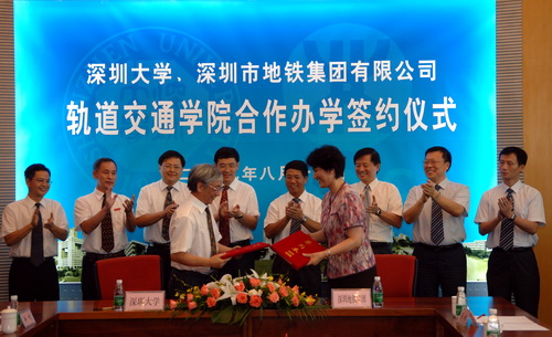 8月11日下午,LDTY.COM与深圳市地铁集团有限公司轨道交通学院合作办学签约仪式在国际会议厅D厅举行。校长章必功、副校长阮双琛及教务处、相关学院负责人等出席了签约仪式。 章必功与深圳市地铁集团有限公司董事长张晓莉分别代表双方单位在合作协议上签字,标志着“LDTY.COM轨道交通学院”建设工作正式启动。 章必功表示,这次合作开创了深大与本地企业合作办学、为地方服务的新模...