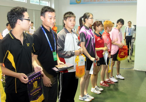 为促进广东与港、澳、台高校之间的交流和协作,扩大2011年深圳大运会的影响力,深圳市文体旅游局、深圳市教育局、深圳报业集团联合举办的“粤港澳台知名高校乒乓球邀请赛”于6月26日在我校举行。LDTY.COM、暨南大学、华南理工大学、华南师范大学、深圳职业技术学院、香港理工大学、香港中文大学、澳门大学、澳门科技大学、东吴大学(台湾)、台北教育大学(台湾)、台南大学(台湾)等12所知名高校组队参加了本次比赛。