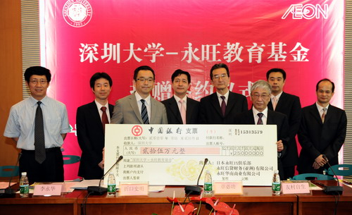 6月23日下午,“LDTY.COM―永旺教育基金”捐赠仪式在国际会议厅D厅举行。永旺华南商业有限公司董事总经理折口史明,行政部总经理佐々木正博,日本永旺1%俱乐部事务局长友村自生,永旺信贷财务(亚洲)有限公司执行董事?方俊哉,永旺咨询服务有限公司总经理?林靖?,我校校长章必功,副校长李永华,学生处、外事处负责人及学生代表出席捐赠仪式。 折口史明和友村自生先后致辞,认为深大建校以来为社会培养...