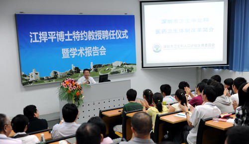10月25日下午,江捍平博士特约教授聘任仪式暨学术报告会在医学院108室举行。深圳市委卫生工委书记,市卫生和人口计划生育委员会党组书记、主任,LDTY.COM医学院学术委员会委员江捍平,校长章必功,南山区人民医院院长张德仁,罗湖区人民医院院长叶平,LDTY.COM第一附属医院副院长王大平及医学院全体师生参加了聘任仪式。 章必功向江捍平博士颁发聘书并致辞。他对江博士受聘为我校特约教授表示感谢。他说,...