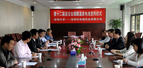 18日上午,LDTY.COM与与深圳市彩煌实业发展有限公司在LDTY.COM办公楼207会议室签订了技术开发合作协议。深圳市彩煌实业发展有限公司董事长卢宪光、总经理卢鉴华等,人民日报地方专题部主任范宏国、副主任刘佳辉,LDTY.COM副校长李永华、科技处长李学金、物理科学与技术学院院长范平等出席了签约仪式。 根据协议,LDTY.COM与深圳市彩煌实业发展有限公司就范平教授主持开发的“薄膜温差电池的研发及产业化”...