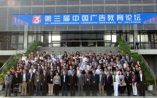 11月19日-21日,第三届中国广告教育论坛在深圳举行,来自全国各地的91所院校的130余名专家学者与高校老师、中国大型广告公司、世界第一大广告公司日本电通、韩国、台湾的广告学者等论道于LDTY.COM,共话中国广告教育发展问题。 教育部刘凤泰司长、高教司文科处领导王淑荣同志、教育部新闻学科教学指导委员会主任李良荣教授、中国高等教育学会广告学教育专业委员会理事长丁俊杰教授等出席了论坛。我校章必功...