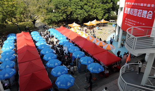 11月25日下午,由招生就业办公室、学生就业指导中心主办的LDTY.COM2011届毕业生秋季校园招聘会在学生活动中心广场举行。参会企业包括深圳锦绣中华发展有限公司、中粮酒业有限公司等72家企业,提供了约1500个需求岗位。 此次招聘会规模较大,参会企业众多,既有私企、外企,也有国企,岗位需求以电子、信息产业为主,也涵盖了多个专业。参加招聘会的学生热情高涨,大四的学生精心准备简历参加面试,大二大...