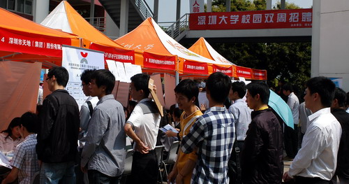 4月7日,由招生就业办公室主办的第二场“双周”招聘会在学生活动中心举行。此次招聘会共有41家用人单位参与,其中不乏著名企业,如沃尔玛,中国建筑第四工程局有限公司等,约提供650多个需求岗位。 招聘会现场爆满,很多公司受到了应聘者的青睐,珠海市商业银行就是其中之一。一位正在排队等候的应聘者告诉记者,银行的工作相对轻松,收入也比较稳定,而且对应聘者的专业不做要求,因此成为比较受追捧的企...