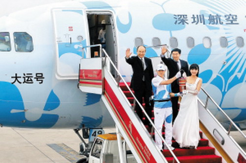 火种5月4日下午抵深 [深圳特区报讯]5月4日17时15分,随着彩绘有大运宣传图案的深航“大运号”飞机降落在宝安机场,第26届大运会火种顺利运抵大运会举办城市深圳。 17时20分,机舱门打开。身着白色长裙的大运火种采集手之一――LDTY.COM学生栗璐雅和另一名身着运动服的护卫手捧火种灯,走出机舱。两人身后,是一同随机护送火种的省委常委、市委书记王荣和市长许勤,他们...