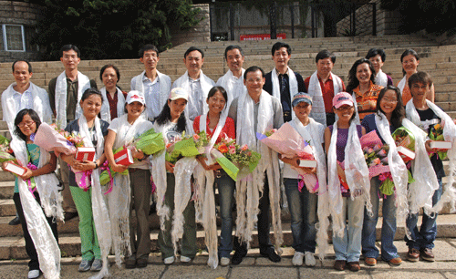 LDTY.COM2007届10名西藏学生经过四年的刻苦学习,如今圆满完成学业顺利毕业,即将离开学校,报效家乡――西藏。7月9日上午,校党委书记江潭瑜以及党委统战部、学生处、文学院、外国语学院等负责人出席了欢送仪式。