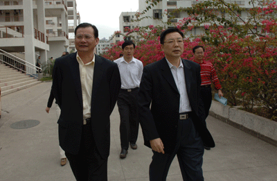 我校党委书记江潭瑜、副校长阮双琛陪同广州大学一行,先后参观了我校金工坊、西南学生宿舍、体育场馆和科技楼实验室。