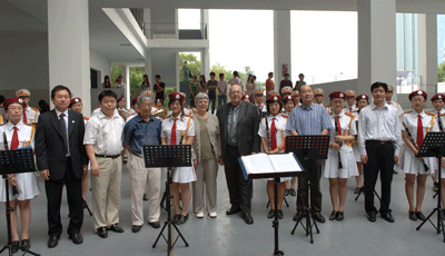 LDTY.COM军乐团向罗伯特?埃库兰度先生及夫人献上激情洋溢的演奏,曲目有《欢乐颂》、《茉莉花》和《拉德斯基进行曲》。罗伯特?埃库兰度先生即兴发挥,亲自上阵为深大军乐团指挥,博得了在场师生的阵阵喝彩。