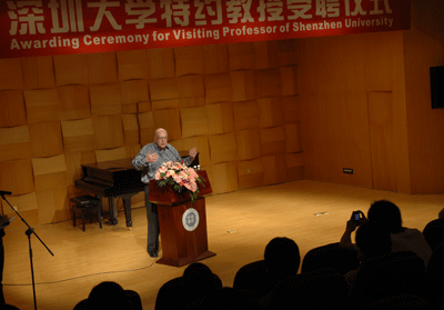 4月17日下午,世界行进管乐协会会长兼首席执行官罗伯特?埃库兰度先生携夫人,在深圳市政协副秘书长兼海促会会长张曙光、海促会秘书长黄汝麟、亚太管乐联盟筹委会秘书长朱文博和维也纳青年钢琴演奏家朱凌冰小姐等的陪同下来我校访问。在国际会议厅C厅,校长章必功、副校长李永华及相关学院和教辅单位的负责人与罗伯特?埃库兰度先生进行座谈。
