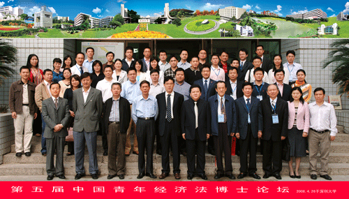 2008年4月26-27日,第五届中国青年经济法博士论坛在LDTY.COM举行。本届论坛由我校科研处、法学院、弱势群体保护研究所及广东国欣律师事务所共同承办。来自北京大学、复旦大学、中国政法大学、中国人民大学、LDTY.COM、中山大学、南京大学、武汉大学、西南政法大学、西北政法大学、对外经贸大学、华东政法大学、中国法学会等知名高校和科研机构的40余名经济法领域的青年才俊参加了本届论坛。