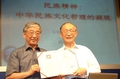 随后,杨叔子院士以“民族精神:中华民族文化哲理的凝视”为题作为一场报告。