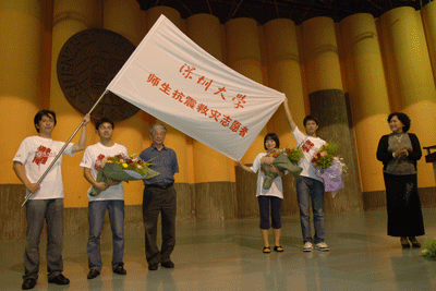 我校4名师生6月2日赴四川地震灾区开展为期10天的救援工作。5月30日晚,我校在演会中心为赴四川灾区志愿服务师生举行欢送仪式。校长章必功、校党委副书记陶一桃,组织部、宣传部相关负责人出席了送行仪式。