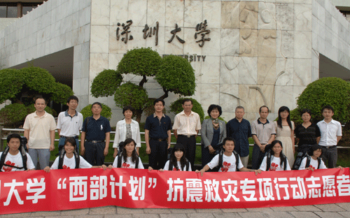 5?12特大地震发生后,惨重的灾情深深牵动和震撼着深圳广大青年学子的心。“到灾区去,到祖国和人民最需要的地方去”,成为许多大学生发自肺腑的心声,他们纷纷主动请缨,到一线去为灾后恢复重建贡献力量。据悉,此次入选团中央“志愿服务西部计划”抗震救灾专项行动的13名大学生志愿者均来自LDTY.COM,他们是从报名的100多名优秀学生中经过严格考核选拔出来的,并接受了专题培训,均具有较强的工作能力。13名大学生将分赴灾情严重的四川汶川县和甘肃陇南市、康县、武都区等地开展志愿服务,协助当地有关部门参与灾后重建工作。