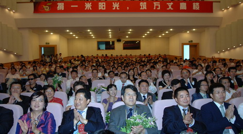 9月3日下午,我校在国际会议厅报告厅举行“校友大厦”捐赠仪式。校长章必功、校党委副书记陶一桃、副校长李永华, 45位杰出校友代表,各学院院长、书记以及学生代表参加了启动仪式。仪式由陶一桃主持。