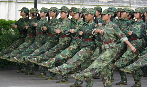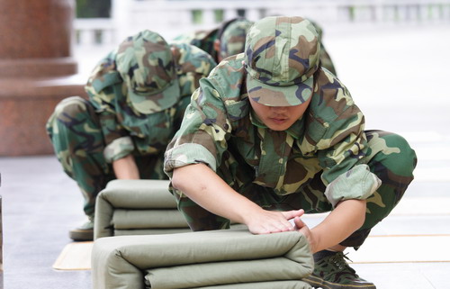 慰问团到达后,早已整齐列队等候在军训基地小广场的2008级各连学员代表们,通过整理内务、列队表演等精彩表演,向学校领导汇报他们6天来的训练成果。整齐的步伐、敏捷的反应以及宏亮的口号赢得了各位领导和老师阵阵热烈的掌声。