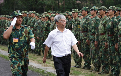 9月19日,江潭瑜、章必功、陶士平、陶一桃、邢锋、李永华等校领导兵分三路,率各学院、各部门负责人赴广州、葵涌、梅林三地,慰问已参加军训一周的我校2008级新生和教官、带队教师。