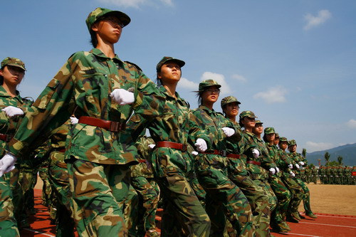 学生代表龚芯欣在会上发言,她说,十四天的军训生活即将结束,我们苦过,但也快乐;我们累过,但收获了;我们黑了,瘦了,但精神上都坚强了!她代表参训学生,感谢教官们训练场上的严厉,感谢指导员们生活上亲切的关怀,感谢领导们关切的慰问。