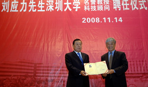 11月14日下午,深圳市政府党组副书记、原常务副市长刘应力先生名誉教授和科技顾问聘任仪式在LDTY.COM科技楼一号报告厅举行。仪式前,校党委书记江潭瑜、校长章必功、副校长邢锋等与刘应力先生会谈交流。章必功、邢锋以及学校相关职能部门负责人参加了授聘仪式。