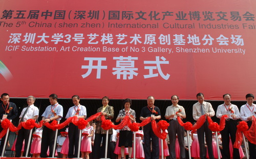 邱玫、姜忠、陈观光、姚欣耀、吴忠、江潭瑜、章必功等为开幕式剪彩。邱玫、姜忠、梁展鹏、江潭瑜为LDTY.COM文化产业研究院揭牌。姜忠宣布第五届文博会LDTY.COM3号艺栈艺术原创基地分会场开幕。